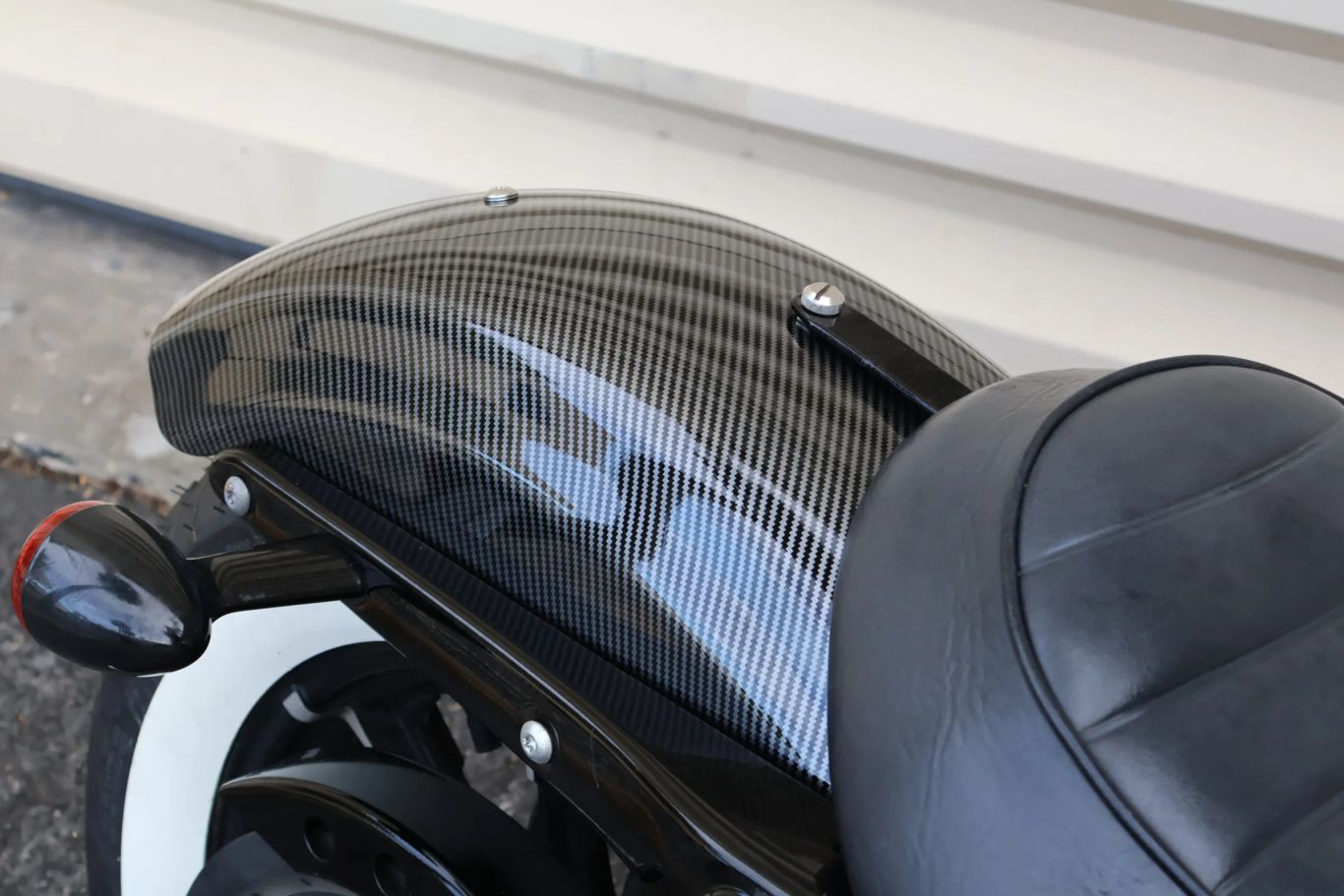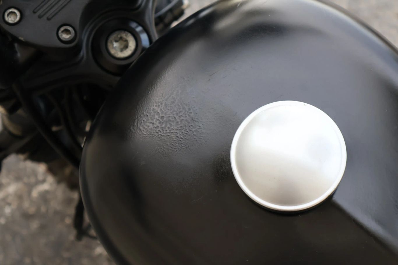 - Style: Blacked-out finishes, minimal chrome, compact βpeanutβ tank and monochrome theme emphasising the βDark Customβ look.