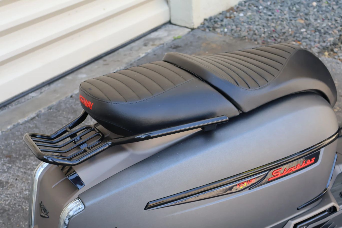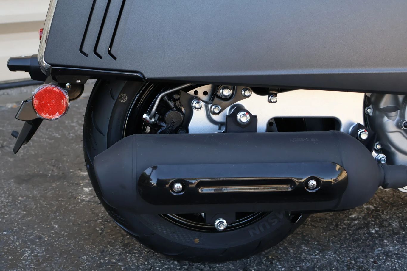 - Styling: Retro-inspired bodywork with front-fender ornament, vintage grille, and separate rider/passenger seat cushions