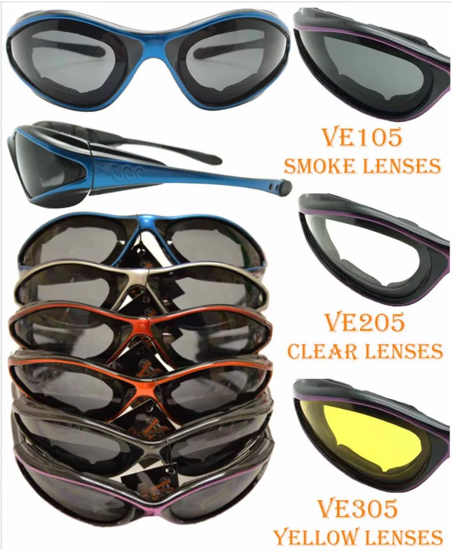 12 pack Sunglasses. 6 Assorted Colors 2 of each Color, Orange, Silver, Red, Blue, Black, Green Our eye-wear is made from top quality materials. UV400 Filtering. Foam Padded for additional wind & dust protection. Aerodynamic form stays in place while riding. All of our eye-wear have shatterproof poly-carbonate lenses. Our lenses exceed the requirements set for impact tests. FEATURES