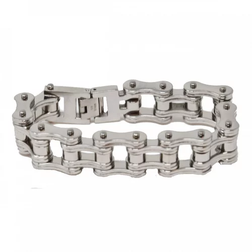 VJ1128 Men’s 3/4 inch Wide All Silver Bike Chain Bracelet